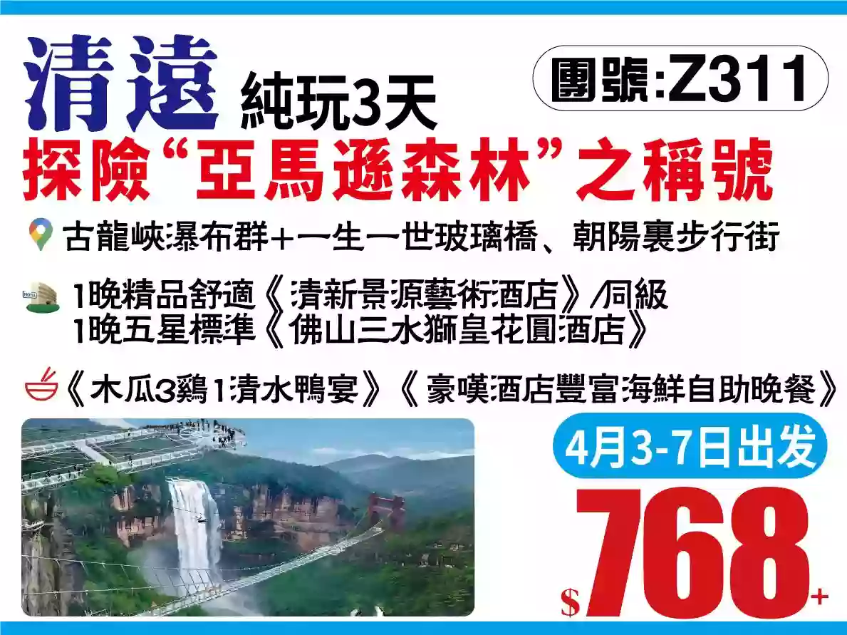風光攝影會員尊享古龍峽瀑布群一生一世玻璃橋佛山三水獅皇花圓酒店豪歎酒店豐富海鮮自助晚餐