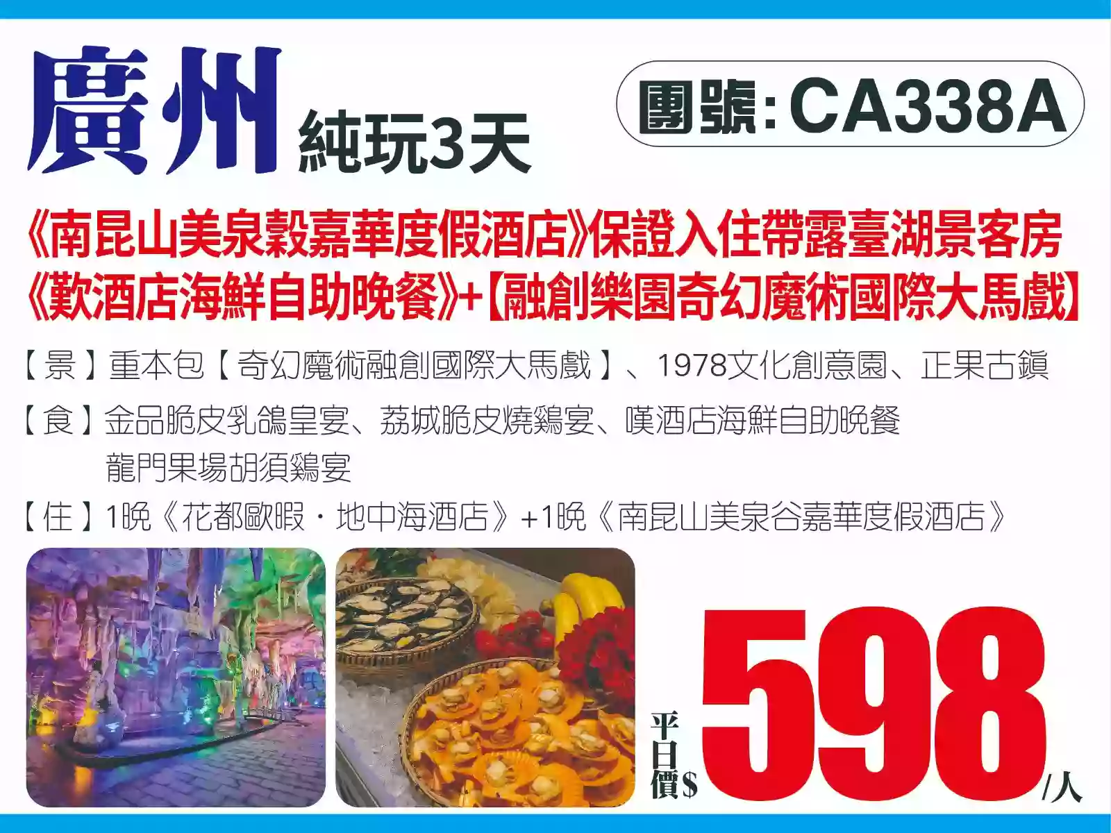 温泉度假歎酒店海鮮自助晚餐融創樂園奇幻魔術國際大馬戲南昆山美泉穀嘉華度假酒店