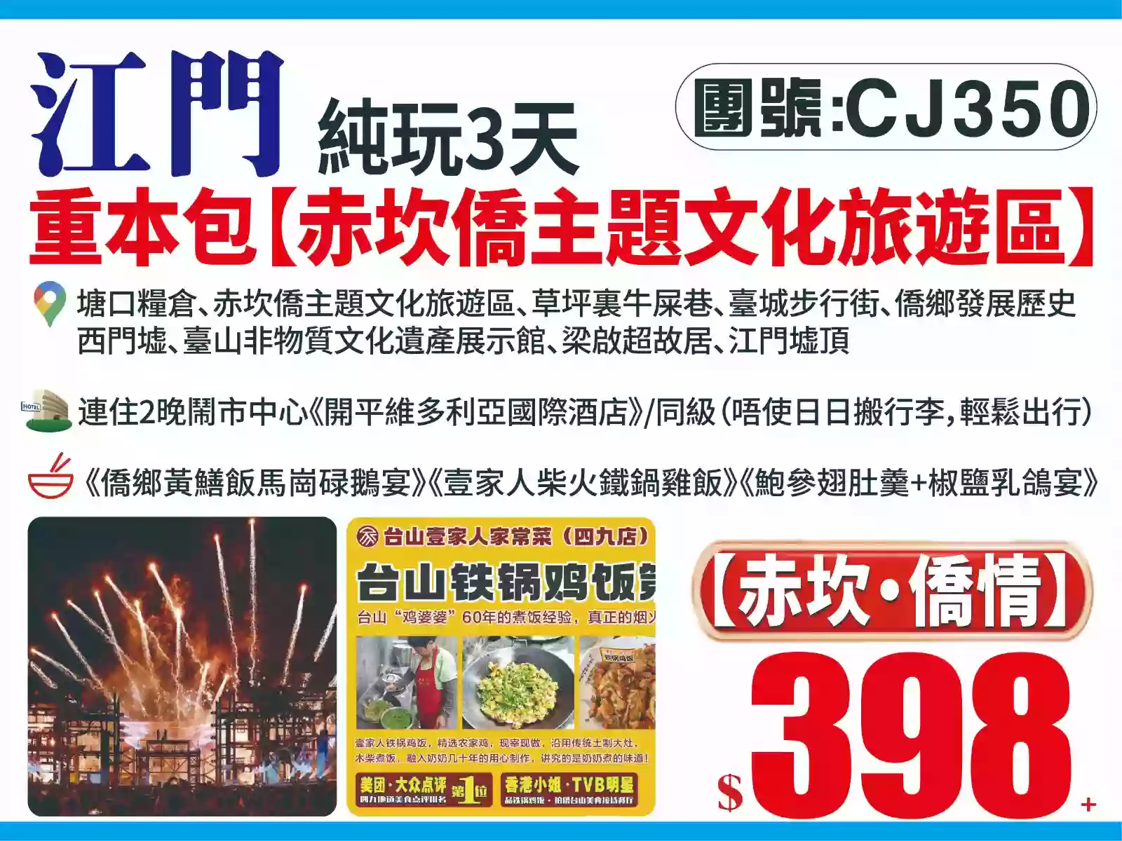 主題樂園重本包開平【赤坎古鎮僑主題文化旅遊區】觀賞大型SHOW【歸途】&【火秀】