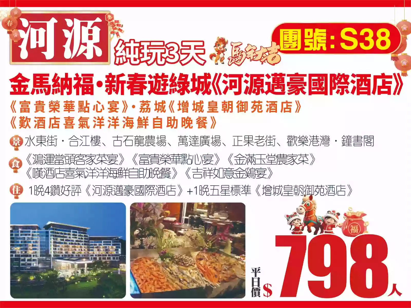 温泉度假充足時間浸溫泉2晚連住《和平九連山溫泉度假山莊南湖東岸》枇杷花豬骨湯·豉油雞宴