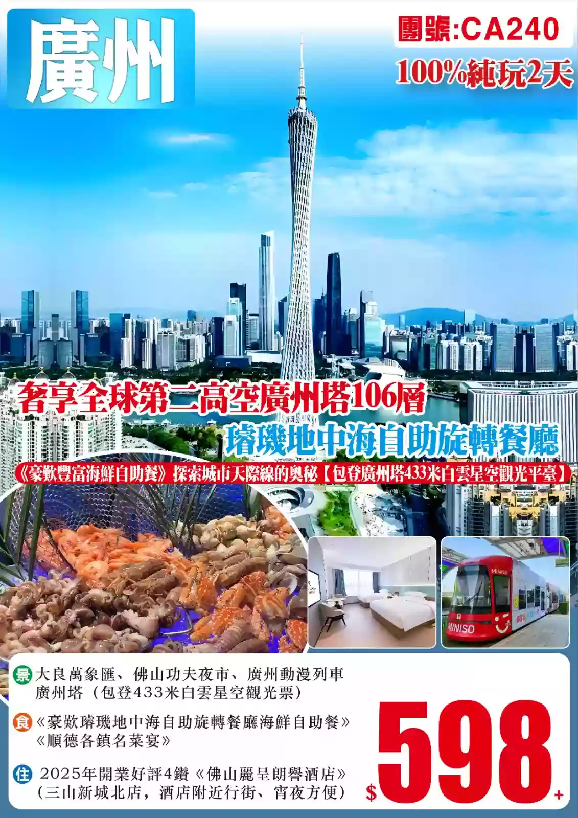 廚神推介會員尊享廣州北京路、花城廣場、十四湧海味街、十八羅漢塔《花都PACO柏髙酒店》