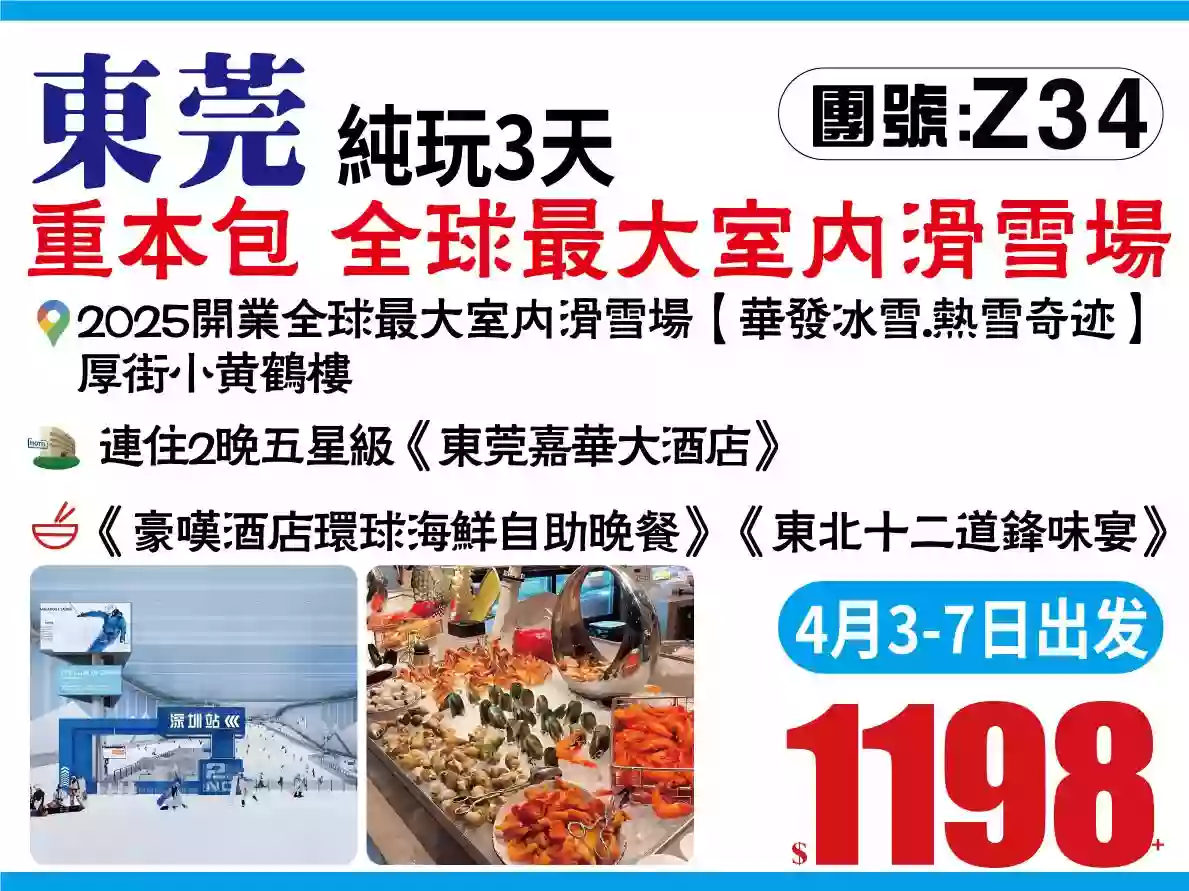 廚神推介會員尊享華發冰雪.熱雪奇跡東莞嘉華大酒店豪歎酒店環球海鮮自助晚餐