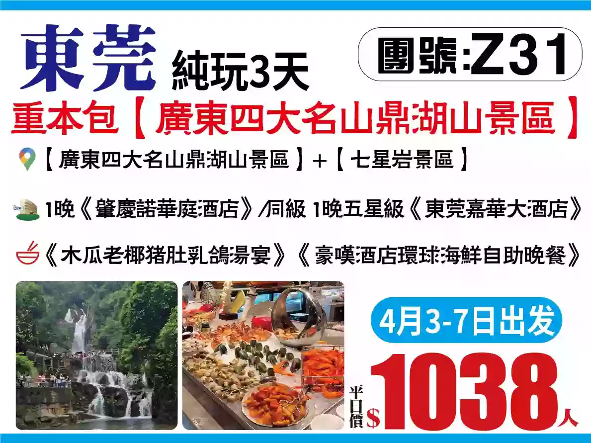 風光攝影會員尊享廣東四大名山鼎湖山景區東莞嘉華大酒店豪歎酒店環球海鮮自助晚餐