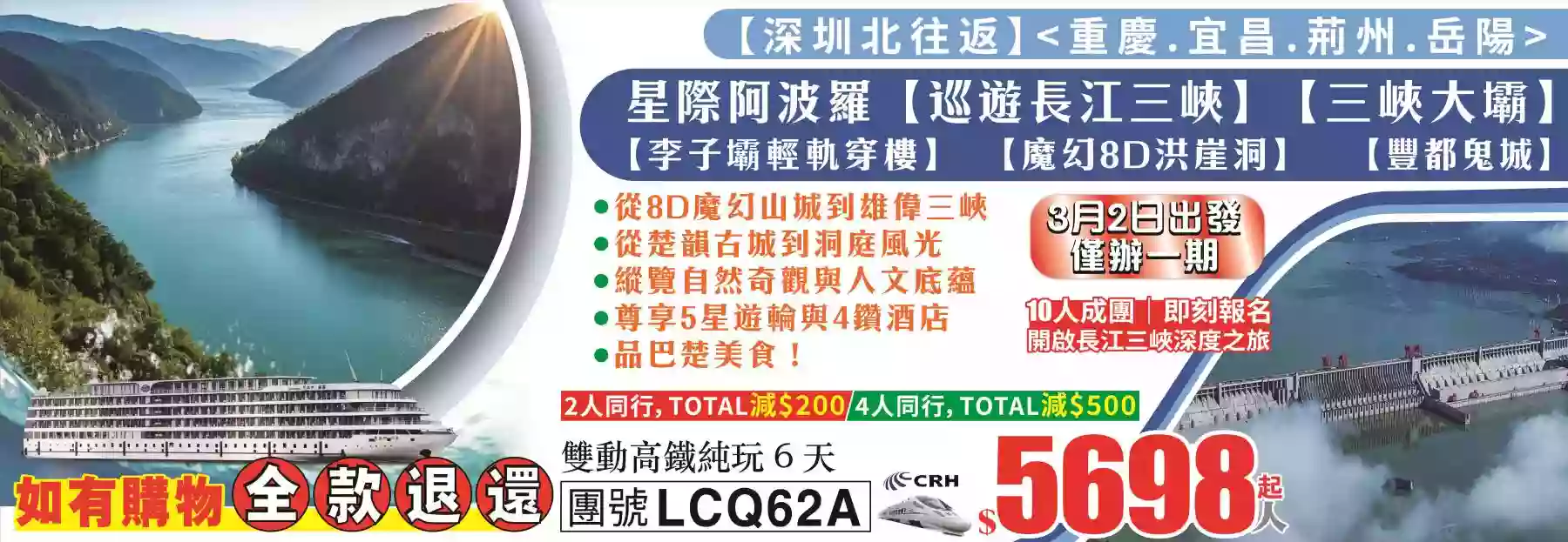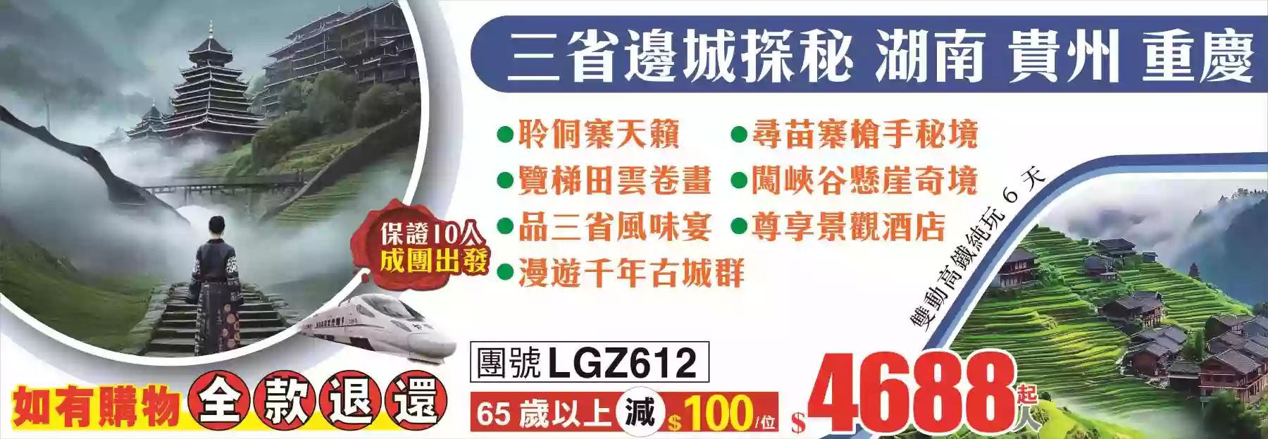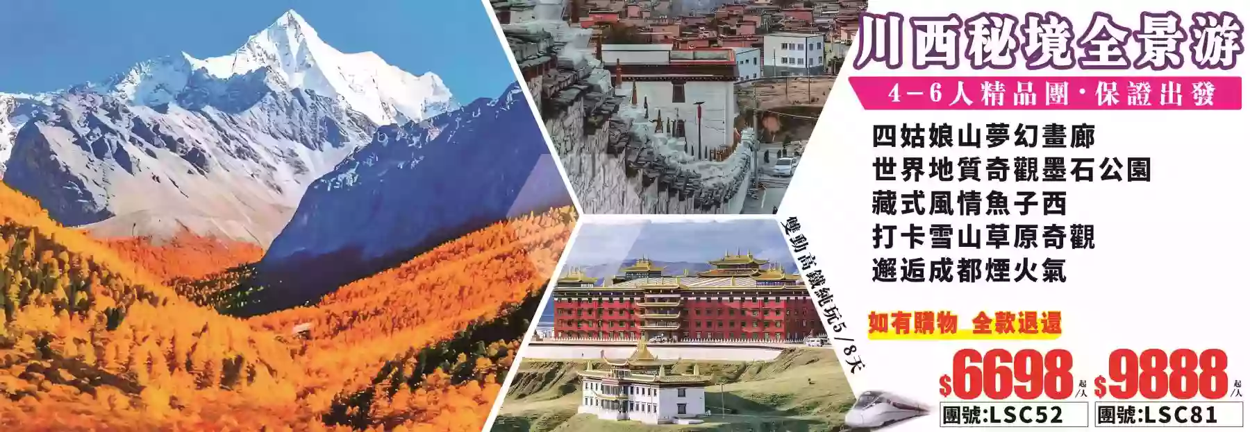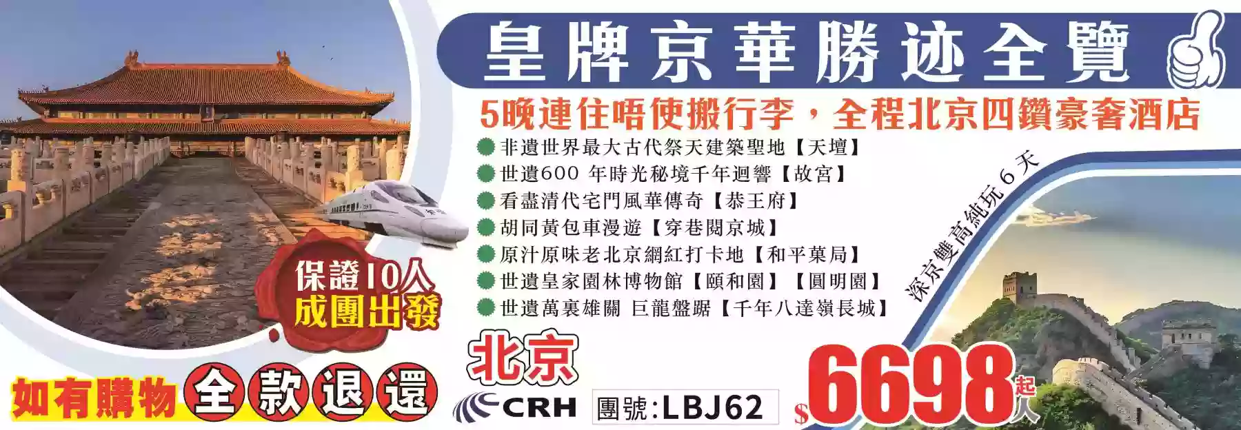 詳細行程熱線中心:香港九龍旺角彌敦道608號總統商業大廈1樓131-132號舖(旺角荷李活商業大廈旁邊)(10:00am-19:00pm/週日、公眾假期正常營業)報名熱線:2626-0102(10條線) Whatsapp:66622307、66622305 、92932808