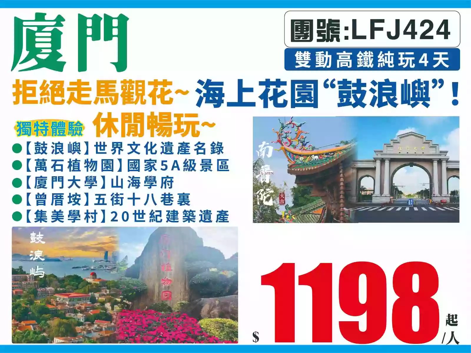 風光攝影高鐵之旅萬石植物園鼓浪嶼一日遊曾厝垵廈門大學南普陀寺集美學村中山路步行街星光熠熠金雞百花星光海岸老港記憶沙坡尾