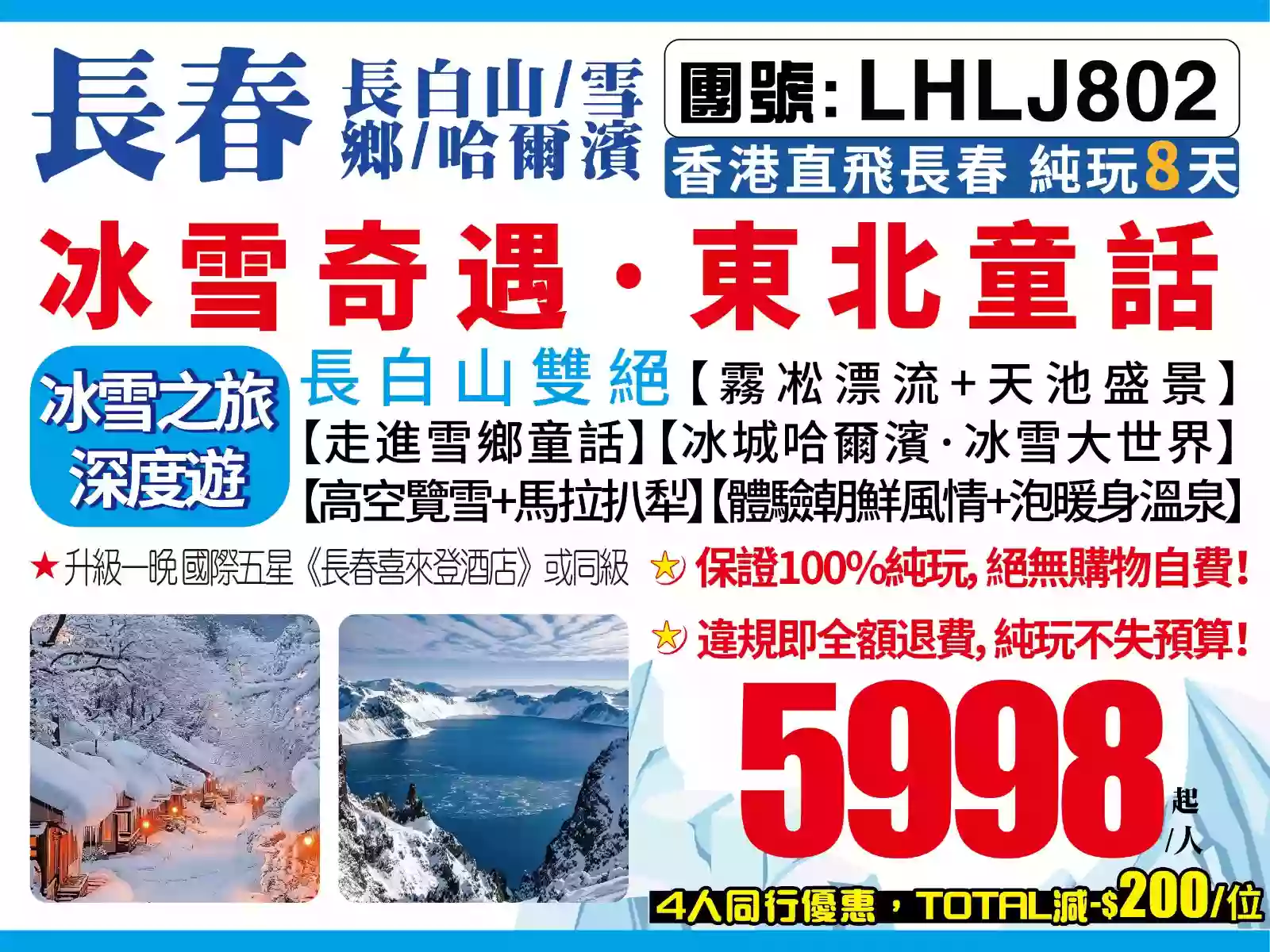 風光攝影長白山漂流長白山天池延吉朝鮮民俗園童話世界-中國雪鄉<冰雪十裏畫廊><高山動物園><威虎寨>乘坐360度高空雪景纜車冰雪大世界