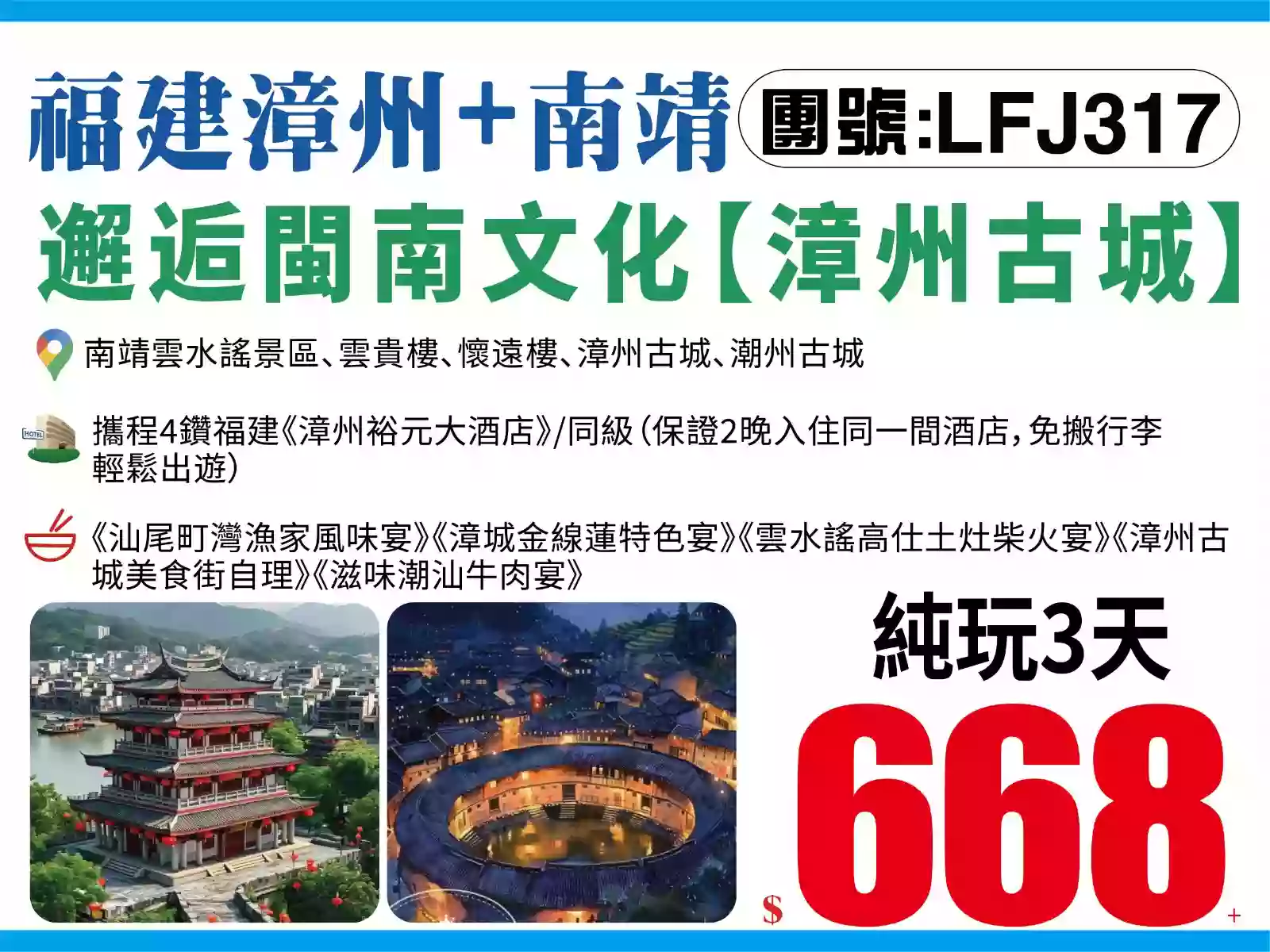 廚神推介聯省巴士“海濱鄒魯”的美譽【福建漳州】【南靖雲水謠景區】(包入場)參觀【和貴樓】(福建土樓“世遺文化遺產景點之一)