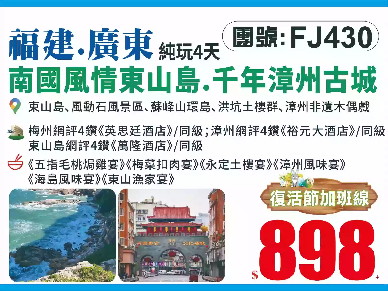 聯省巴士【東山島】【風動石風景區】【漳州古城】【洪坑土樓群】【蘇峰山環島】