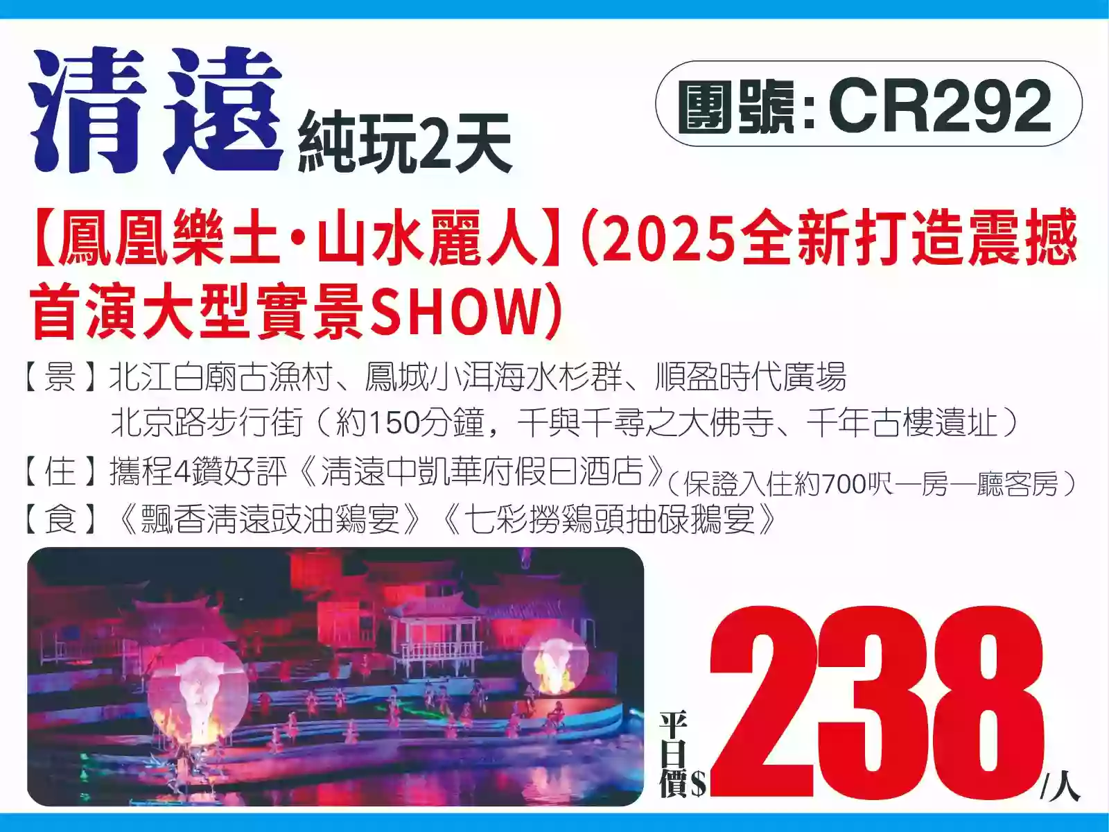 主題樂園大型實景SHOW北江白廟古漁村鳳城小洱海清遠中凱華府假日酒店