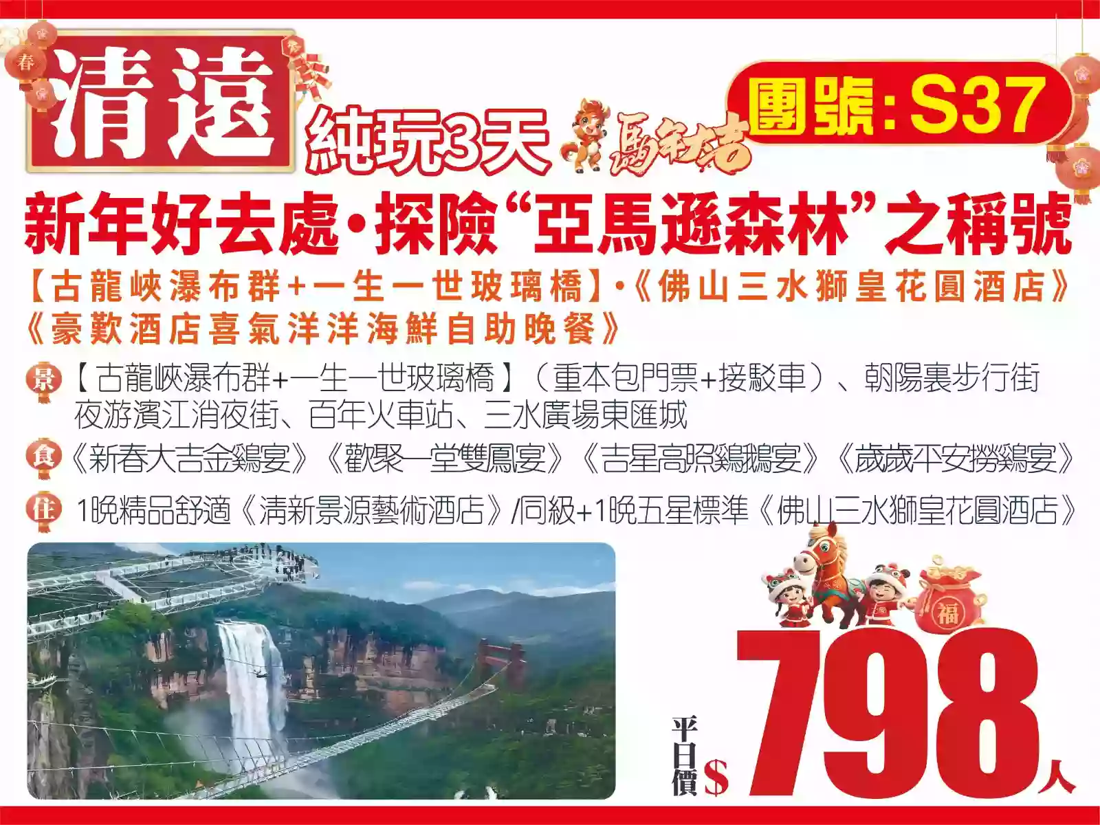 風光攝影古龍峽瀑布群一生一世玻璃橋佛山三水獅皇花圓酒店豪歎酒店喜氣洋洋海鮮自助晚餐