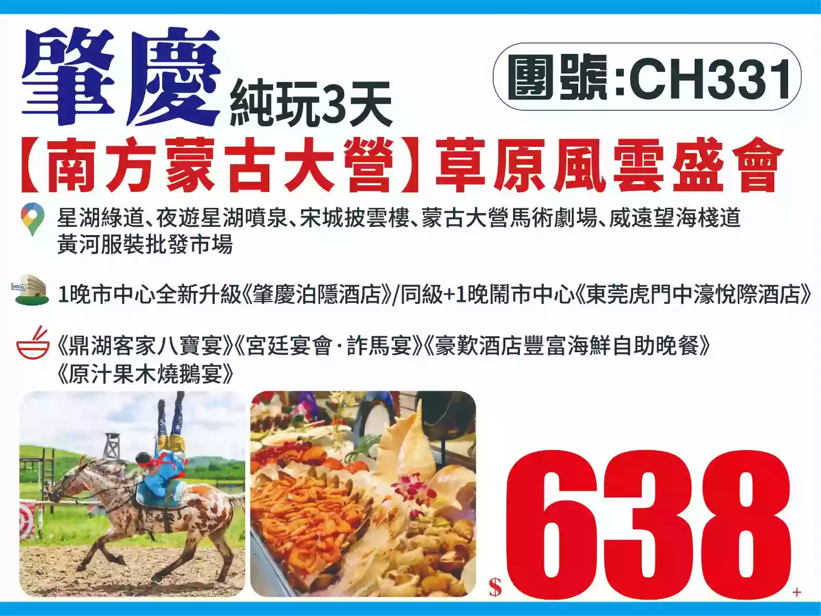 豪華酒店廚神推介《肇慶國際大酒店》《鶴山東古玥湖酒店》【豪歎酒店環球海鮮自助晚餐】、七星岩步行街