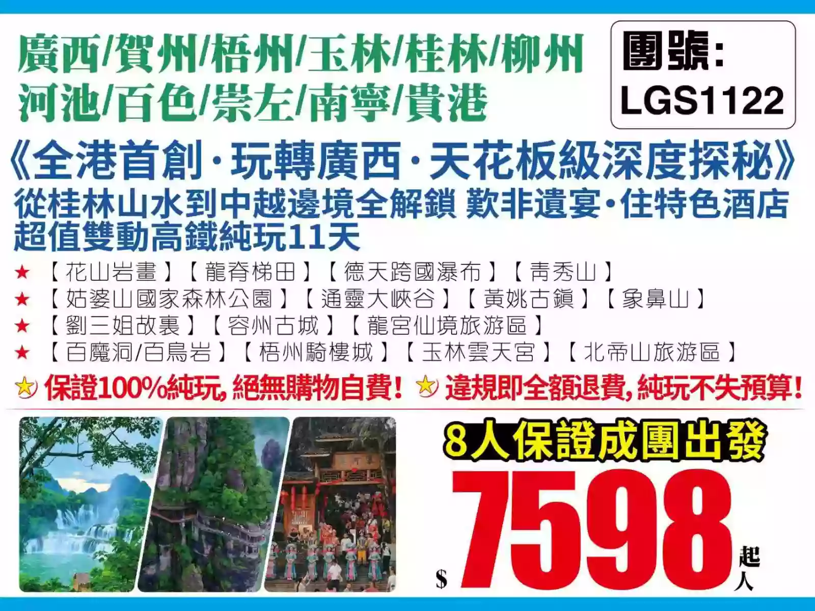 風光攝影高鐵之旅花山岩畫龍脊梯田德天跨國瀑布青秀山姑婆山國家森林公園通靈大峽谷黃姚古鎮象鼻山劉三姐故里容州古城龍宮仙境旅遊區百魔洞/百鳥岩梧州騎樓城