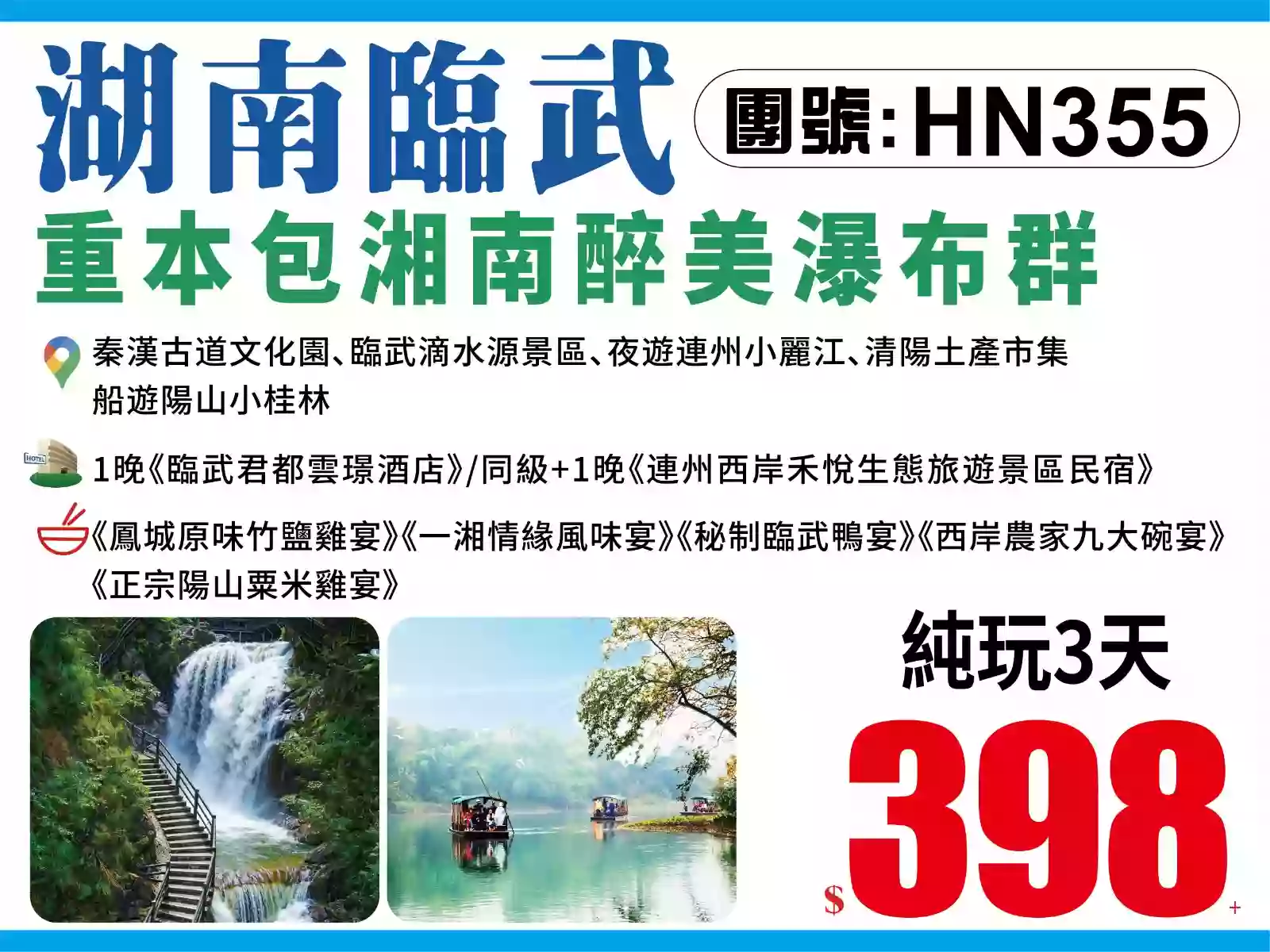 聯省巴士臨武滴水源景區、夜遊連州小麗江、清陽土產市集、船遊陽山小桂林