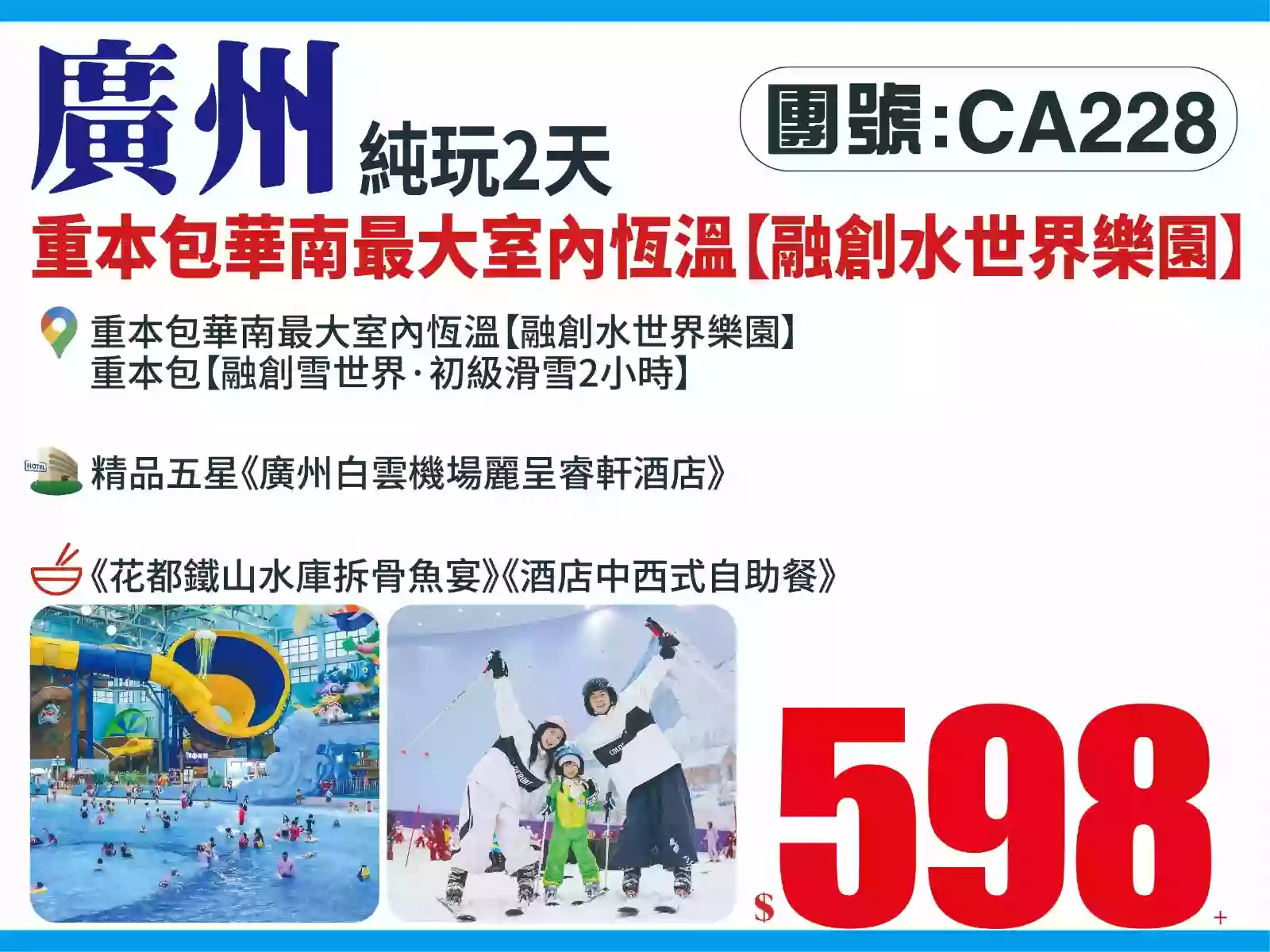 主題樂園冰涼一夏重本包華南最大室內恆溫【融創水世界樂園】【融創雪世界·初級滑雪2小時】