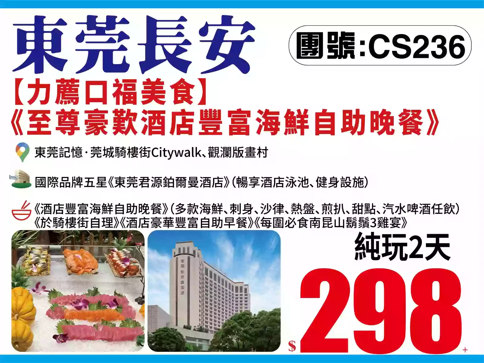 豪華酒店高明君禦溫德姆至尊酒店任浸酒店空中湯泉、幹濕蒸豪歎酒店環球海鮮自助晚餐齊齊撈起手撕雞·西樵大包宴